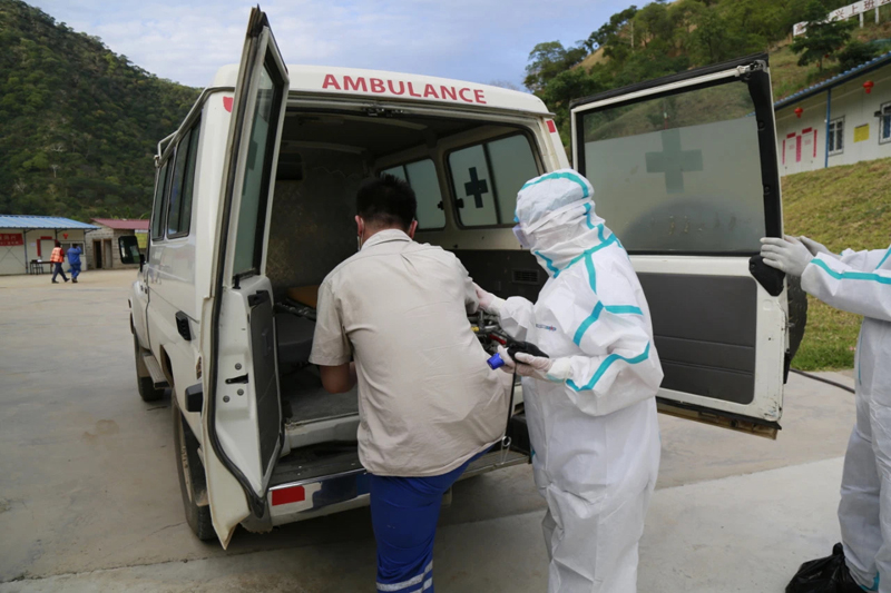 項(xiàng)目部組織疫情防控應(yīng)急演練,模擬中贊職工發(fā)生體溫異常等疑似癥狀后的應(yīng)急處置步驟,組織項(xiàng)目醫(yī)務(wù)室人員前往現(xiàn)場(chǎng)進(jìn)行初步診斷,報(bào)告援贊比亞醫(yī)療隊(duì)進(jìn)行再次問診,同時(shí)做好人員疏散和密切接觸者排查隔離工作,醫(yī)護(hù)人員及救護(hù)車司機(jī)等做好全套防護(hù),演練現(xiàn)場(chǎng)秩序井然,步驟合理,提高了項(xiàng)目疫情防控應(yīng)急管理能力。