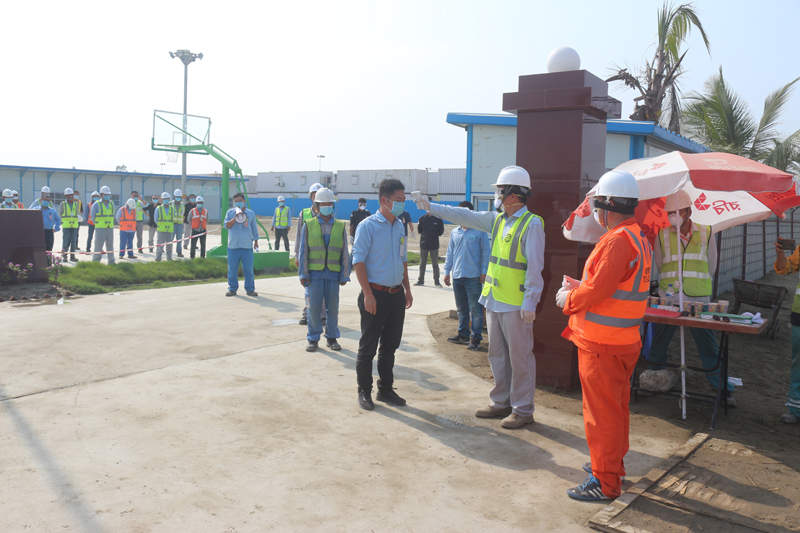 為強化項目全體員工對疫情的認識,項目部立即采取了多項措施。在普及新冠肺炎疫情知識方面,組織人員搜集、整理、錄制相關知識講座視頻,并用中、英、孟三語向場內中孟員工、業主、警察等相關方進行普及,提高場內員工對新冠肺炎疫情的認識及防疫意識,科學理性地對待疫情;同時,組織防疫相關演練,包括生活物資采購防疫演練、現場工作人員體溫超標且伴有疑似癥狀救援演練等,并邀請警察、分包商參與演練,直觀地了解項目部防疫、防爆措施,提高全體中孟員工的防疫信心。一名孟籍員工說,“起初面對不斷飆升的確診病例,心中難免惶恐不安,但是項目部不斷地給我們科普相關知識,組織講座培訓,現在大家對疫情有了足夠的認識,我們可以在項目安心工作了”。
