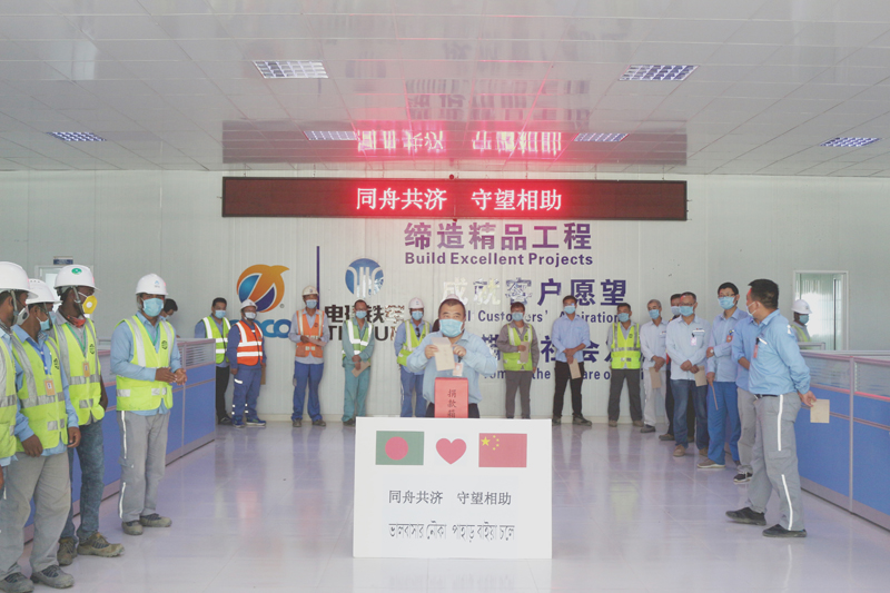 隨后,項目部組織了“人間有愛,溫暖你我”的捐款活動,中孟員工紛紛慷慨解囊,支援抗疫一線。本次活動共籌集善款,由孟加拉國中國商會及華人華僑聯合會代為采購防疫物資,捐贈至國內防疫一線。從長江三峽大學畢業后來到中國電建的孟加拉籍員工Shorker說:“中國是一個偉大的國家,我在中國留學四年,深深感受到了中國人民的善良和友好。我愿意貢獻自己的一份力量,支援中國,中國必勝!”