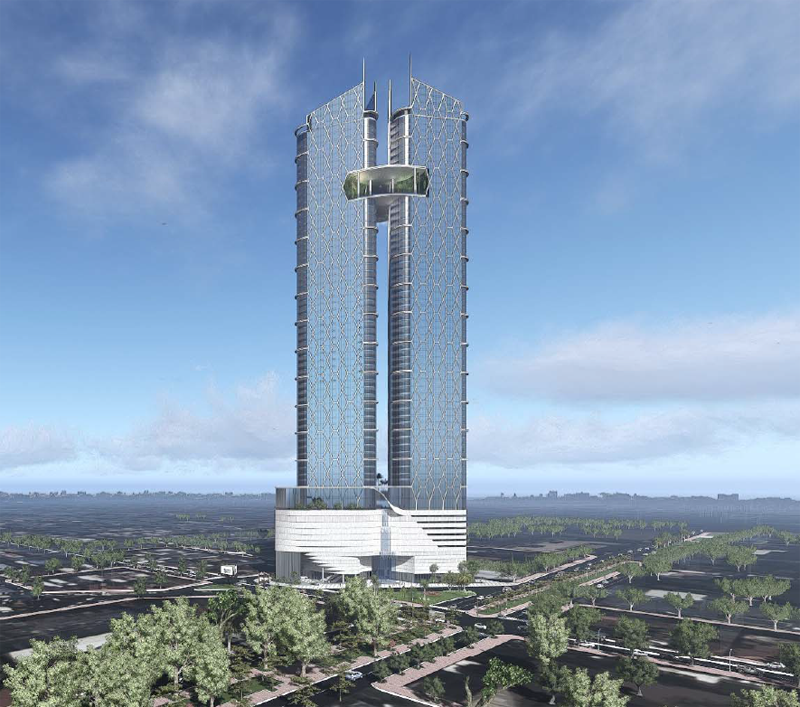 皇家一號(hào)商業(yè)綜合體項(xiàng)目位于金邊市中心。設(shè)計(jì)高度為245米,設(shè)有地下6層樓和地上62層樓,為雙塔結(jié)構(gòu)。建成后將成為匯集五星級(jí)酒店、高級(jí)住宅、辦公樓與大型購(gòu)物商場(chǎng)于一體的金邊市地標(biāo)性建筑。