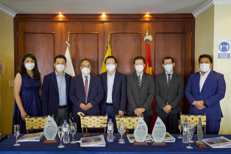業(yè)主CELEC EP總經(jīng)理Gonzalo Uquillas Vallejo,南方電力公司總經(jīng)理Hermel Flores、財(cái)務(wù)總監(jiān)Ing. Patricio Zuniga,驗(yàn)收委員會(huì)成員Gustavo Luzuriaga,德?tīng)栁魉娬卷?xiàng)目負(fù)責(zé)人出席簽字儀式。由于當(dāng)?shù)匾咔楣芸?,業(yè)主單位的高層領(lǐng)導(dǎo)采用遠(yuǎn)程視頻會(huì)議形式參會(huì),共同見(jiàn)證了雙方簽署紀(jì)要的重要時(shí)刻。為表彰中國(guó)電建德?tīng)栁黜?xiàng)目部在項(xiàng)目建設(shè)過(guò)程中的杰出貢獻(xiàn),Hermel Flores代表CELEC EP在簽字儀式上給項(xiàng)目部頒發(fā)了3個(gè)特別獎(jiǎng)勵(lì)證書(shū),項(xiàng)目經(jīng)理姚安華代表項(xiàng)目部致辭并向業(yè)主、監(jiān)理、驗(yàn)收委員會(huì)成員回贈(zèng)了感謝牌匾,感謝所有參與工程建設(shè)、管理的人員及社區(qū)居民為德?tīng)栁魉娬境晒σ平凰鞒龅呢暙I(xiàn)。